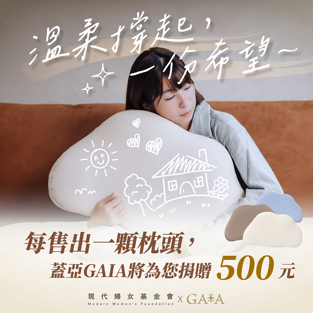 即日起至 2026/05/04,凡透過此頁面購買一顆飄飄能量枕,GAIA 將捐贈500元給現代婦女基金會